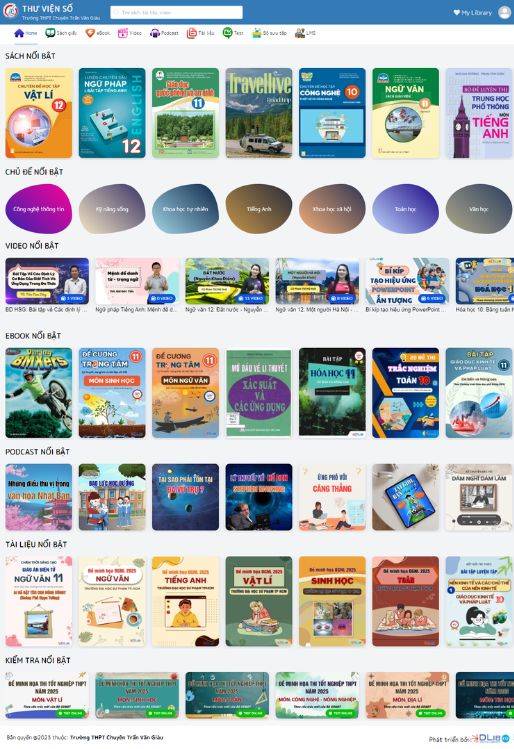 Website thư viện và ứng dụng thư viện số phục vụ giáo viên và học sinh.
